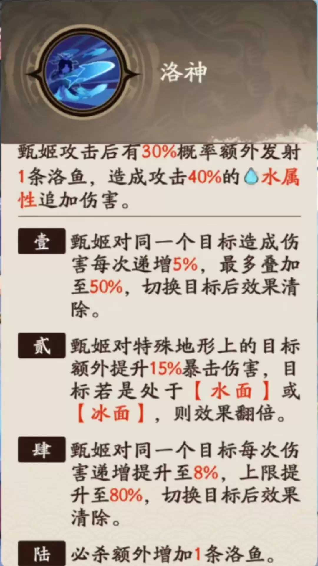 这把武器,无论是从外观还是机制上看,都是为甄姬量身定做的。它不仅提供强大的属性加成,还能创造特殊地形“水面”。这个效果可就厉害了,既能与徐盛等武将打元素反应,形成配合,又能完美联动甄姬自身的二命效果,实现1+1>2的战术价值。