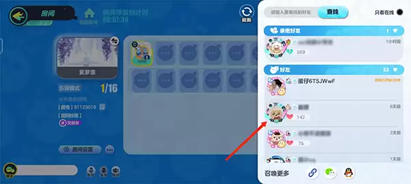 7、大功告成! 在弹出的好友列表中,勾选你已经组在队里的好友,发送邀请。他们一接受,大家就会出现在同一个乐园房间里,接下来就可以尽情玩耍、一起磨练技术啦!