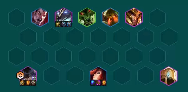站位方面有个小技巧:让所有主宰英雄顶在前排吸收伤害,尼菈则紧贴内瑟斯站位。这样能完美利用薄暮法袍的破甲效果,让尼菈的输出最大化。等抽到亚托克斯和普朗克后,记得及时替换掉沃里克和厄运小姐。