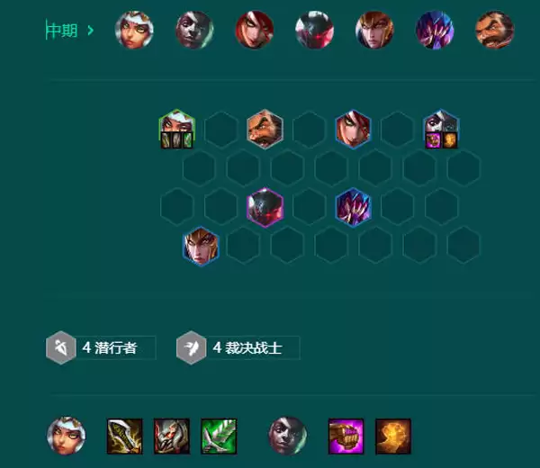 接下来是第二套【442奇亚娜】,4裁决战士4潜行者2祖安。这套阵容最大的优势就是几乎没有天敌,玩起来特别爽快。