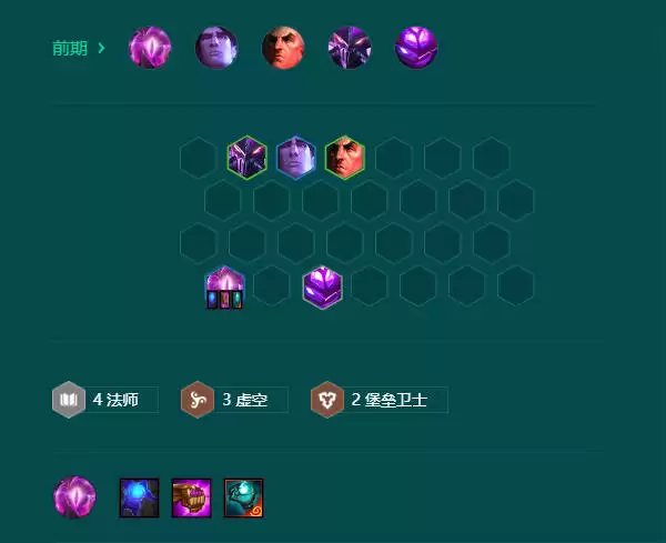 3-2升6人口大搜一波质量,至少搜出4法师3虚空,同时D到两星乌鸦,然后存钱准备上7。7人口开出6法师2司令羁绊,没有皇子先用卡萨丁开3虚空2堡垒。在7人口慢D三星乌鸦和大眼,如果宝石来的多也可以追三。做完大眼三件套后给希尔科做装备。