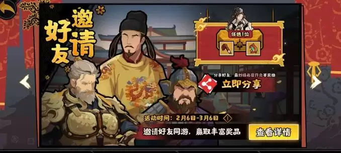 官方这次还搞了个社交激励:只要你成功邀请一定数量的新玩家注册并保持活跃,就能拿到“妙级名臣自选宝箱”,里头有许负、许慎、桓伊、伯牙、子期这五位名臣,覆盖占卜、典籍、音律、外交等多个领域。对于新手来说,这能大大缓解前期配队压力,老玩家也能借此补全收藏。