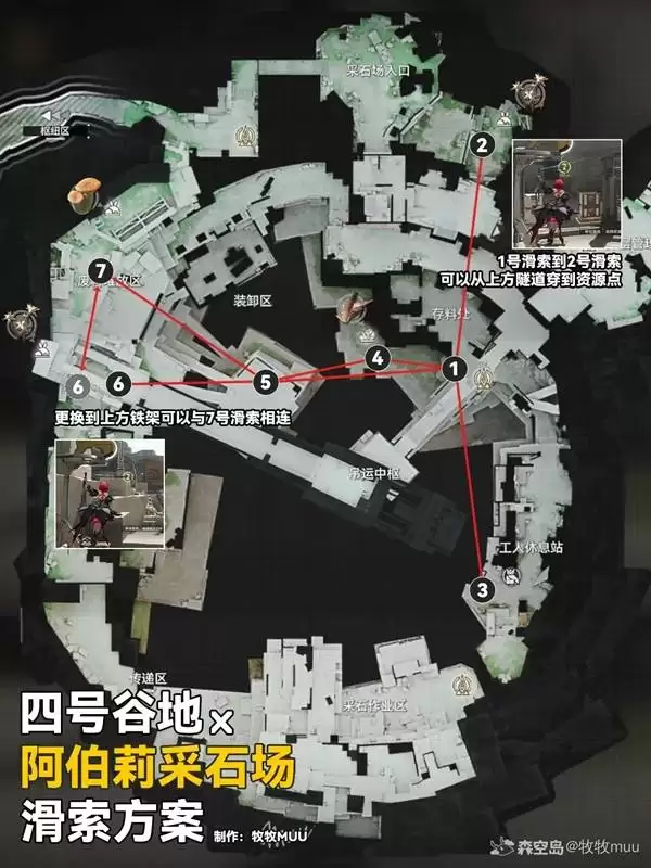 四号谷地的地形就比较复杂了。图4这个矿洞入口处的滑索,我实测下来能节省至少五分钟的爬山时间。话说回来,这种隐蔽点位确实需要多花些心思寻找。