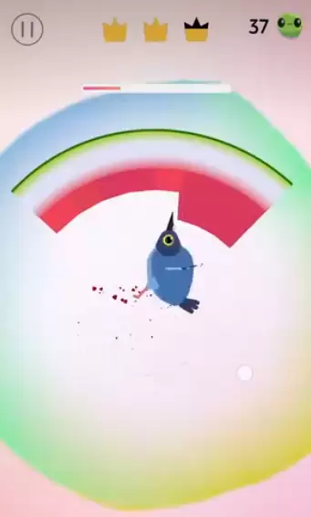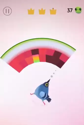 4、 特效结束后,果肉恢复“好”、“坏”分明的状态,游戏才真正开始。接下来要按部就班,遵循“由外向内”的顺序。系统其实有个隐藏机制:外圈的果肉没啄完前,内圈的你是啄不到的。所以,千万别在内圈那些暂时碰不到的果肉上浪费时间。