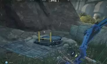 按照上图所示位置跳下去,然后径直往前走,密码门就在眼前,并不难找。