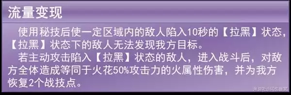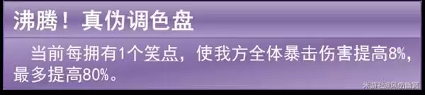一个非常强力的团队辅助能力。当火花拥有10个“笑点”时,就能让我方全体吃到所有的爆伤提升。我个人认为,这是火花作为“辅C”身份最有价值的一点,能显著拉高整个队伍的输出天花板。