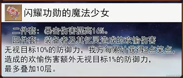 如下图所示的这套,可以算是她的毕业套了。不仅提升爆伤,还能在消耗战技点时无视敌人部分防御力,完美契合她的输出模式。