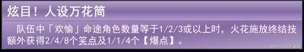 这基本上为她划定了配队方向:固定需要至少3个欢愉角色在队。所以想玩火花,你就得围绕欢愉体系来构建队伍了。