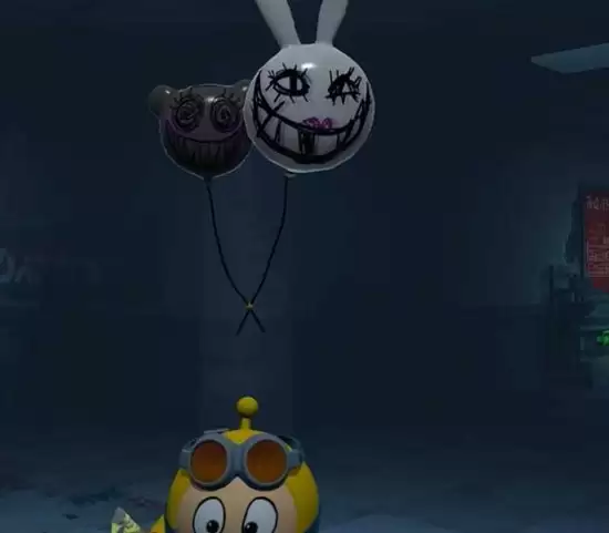 要说本版本最亮眼的设计,当属新增的敌对单位“熊兔气球”。这个由熊头和兔头双气球构成的家伙,可是游戏里首个在天花板固定轨道上位移的敌人。平时它就沿着顶部轨道静默滑行,一旦侦测到玩家,会立刻锁定正上方的位置。这时候仔细观察,会听到轻微的气流声效,看到表皮纹理的躁动变化——这些都是明确的追踪提示。这种兼顾隐蔽性与可预判性的行为模式,给玩家的战术应对留足了发挥空间。