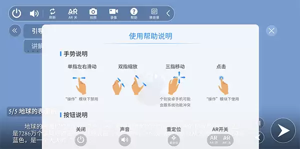 最后,也是关键的一步:如何操作这个炫酷的AR界面?别担心,应用提供了清晰的使用说明。下面这两张图会详细告诉你每个按钮的功能和操作方法,上手就能用。