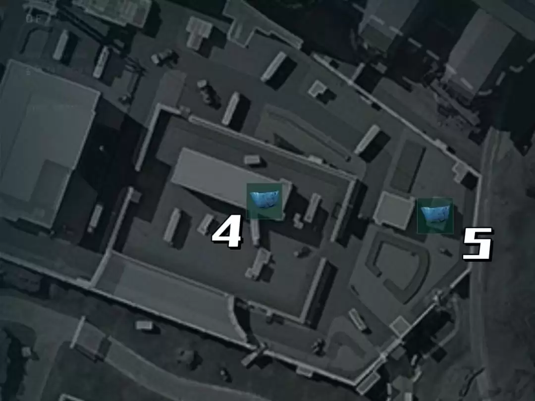 然后,朝行政楼主楼地图方向的右侧看,那边有个停车场(同样也有一个航空箱标志物)。找到航空箱后,别急着走,它旁边有个仓库。走进去,你会看到一堆摞起来的木箱,第四个包就稳妥地放在木箱顶上。