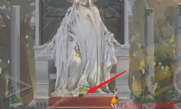 接下来,调查雕像前的盒子。打开它会得到本章的核心道具之一——一张火车票。这意味着你选择了“离开”的道路。