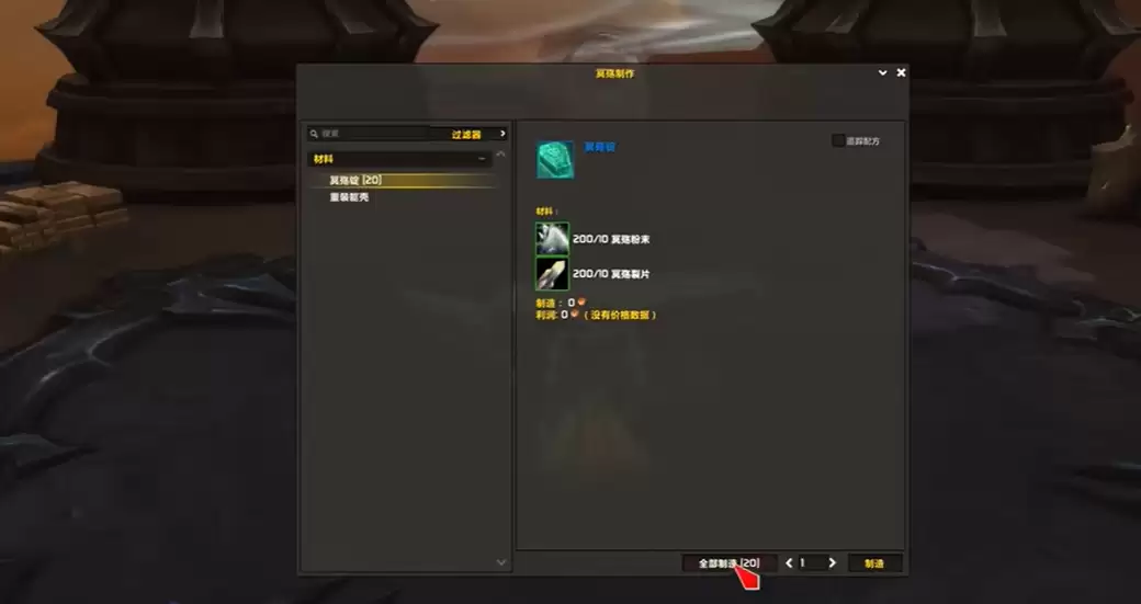 材料收集环节需要点耐心。装备上冥殇占卜器,重点在野兽秘径矿坑和肿胀的影犬洞周边区域搜寻绿色能量球。目标是收集200份冥殇粉末和200个冥殇裂片——这两个数字务必记牢。