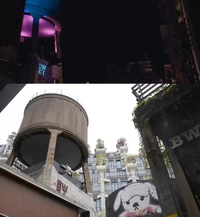 剧中作为视觉符号的水塔,前身是上海春明粗纺厂的工业设施。经保护性改造,现已成为“珀德BWT水塔咖啡”,在保留原始结构的同时焕发新生,是园区内的热门打卡点。