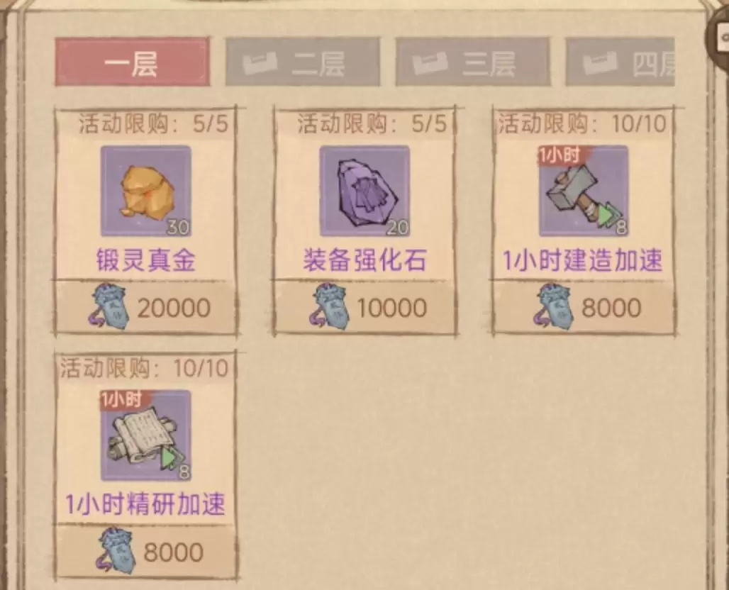 第一层消耗16万太仆令,建议全部兑换“1小时城建加速”和“1小时课业加速”(各80个)。这些基础资源在日常发展中消耗量极大,性价比极高。