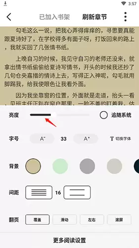 设置面板展开后,最醒目的就是亮度调节滑块。这里有个小技巧:白天建议保持默认亮度,夜间阅读时适当调低,能有效减轻视觉疲劳。根据环境光线灵活调整,这才是保护视力的正确姿势。