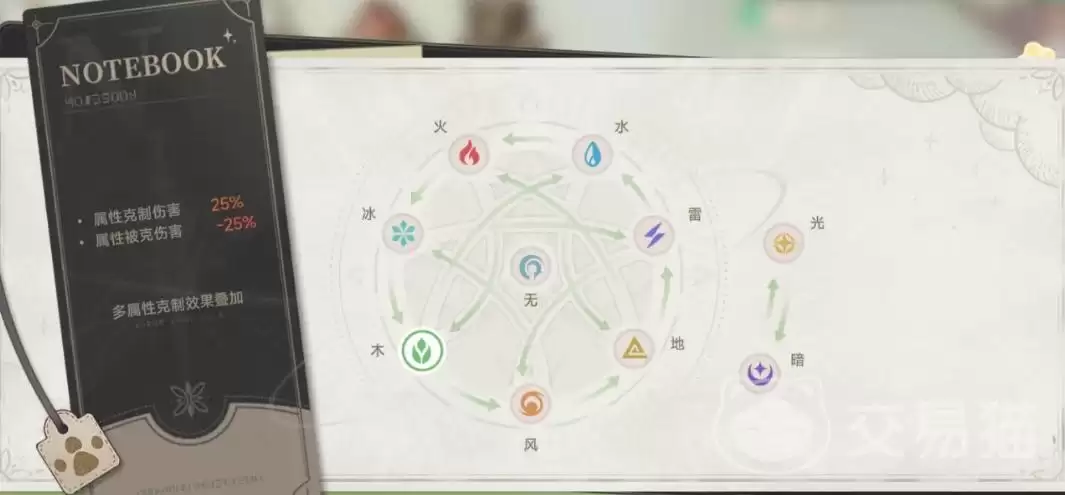 游戏内设有风、火、水、光、木、暗六种元素,构成环状克制关系。克制方造成伤害提升25%,被克方承受伤害降低25%,影响极为显著。主角是唯一的“无”属性角色,其技能能为全队提供通用增伤,对于零氪与微氪玩家而言,是极具培养价值的核心单位。