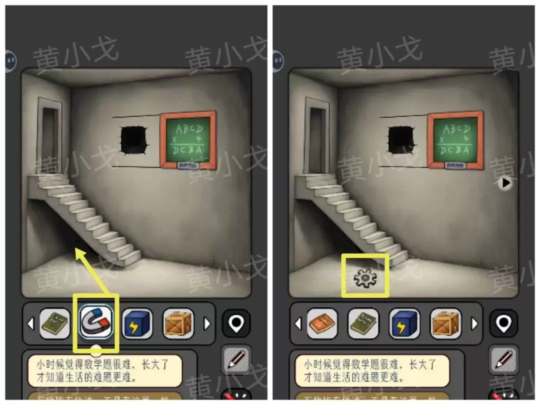 14. [台阶]对台阶下方使用【磁铁】,可吸出隐藏的【齿轮】。