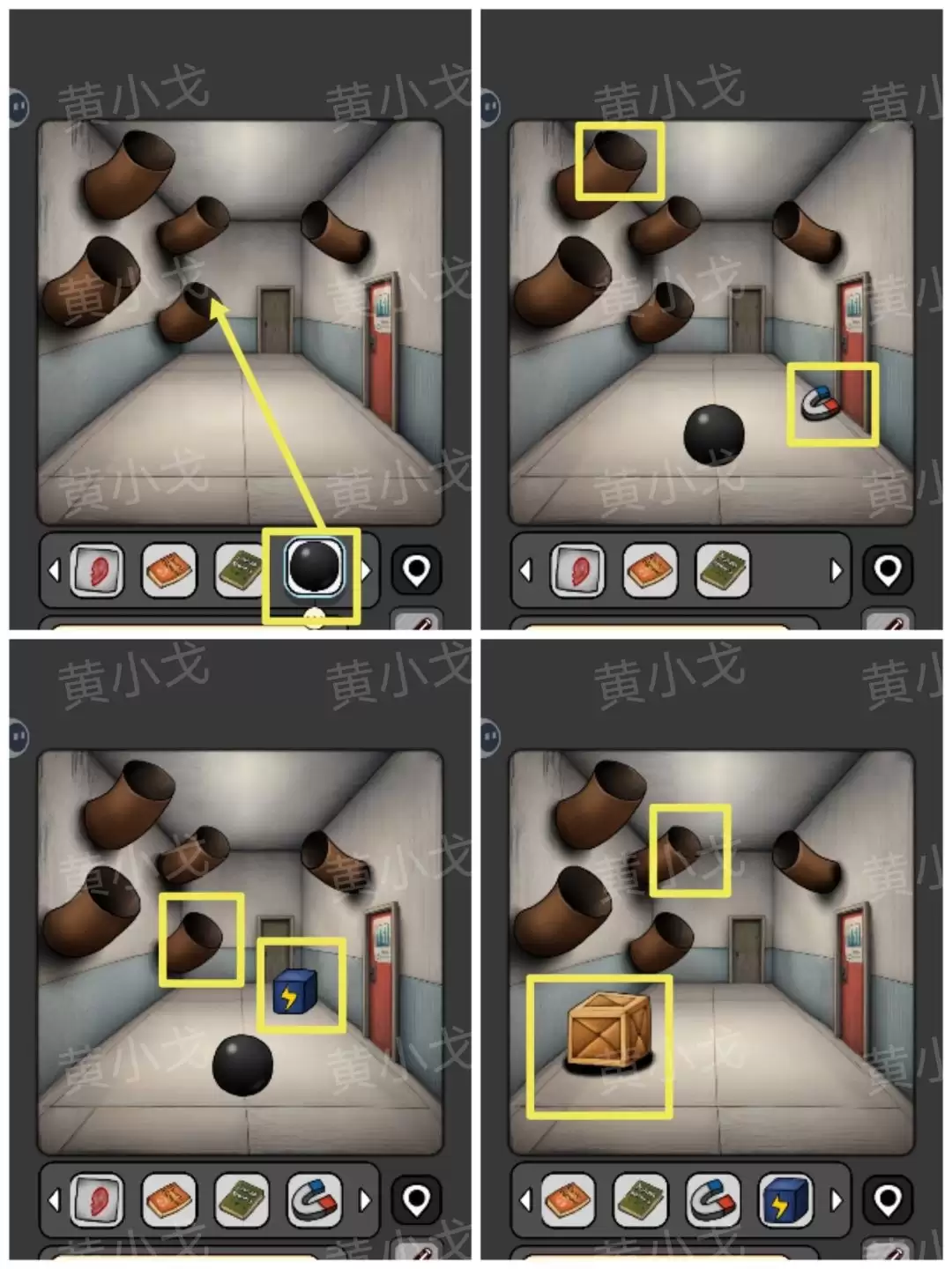 13. [管道]将【铁球】投入不同的管道洞口,可分别获得【磁铁】、【蓝色能量块】和【木箱】三件道具。