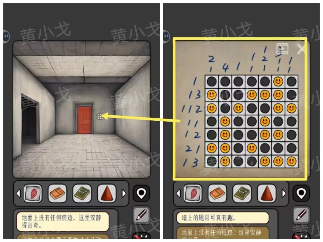 11. [红色的门]点击墙上密码锁,完成一个数织(Nonogram)小游戏。