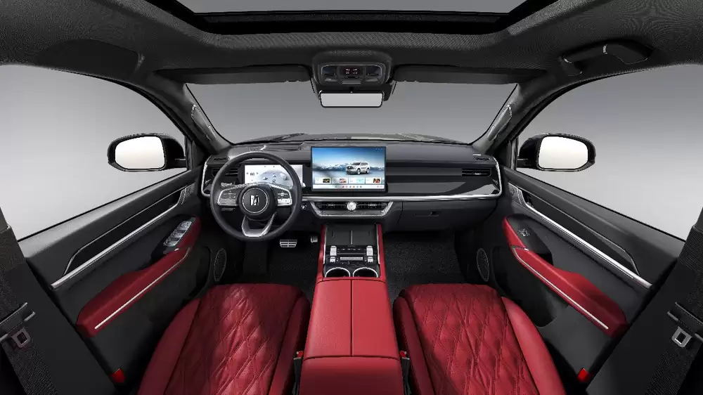 如果说外观的黑,是强者低调藏锋的铠甲;那么内在的红,便是黑马奔腾向上的炽热初心。全新坦克500黑武士在将原厂高定黑化套件的质感全维度拉满的同时,于内饰层面亦带来惊喜。