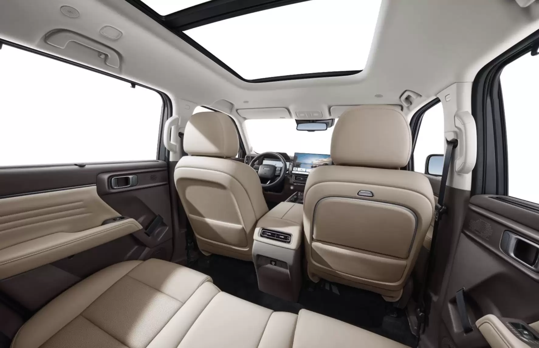 重头戏当然是动力系统。全系搭载的Hi4智能四驱电混系统,由一台1.5T混动专用发动机与前后双电机协同工作。最终输出数据相当亮眼:系统综合功率330千瓦,综合扭矩高达660牛·米,推动这个大块头完成百公里加速仅需5.8秒。顶配车型搭载44.7千瓦时的大电池包,实现了255公里的CLTC纯电续航;而在馈电状态下,WLTC工况油耗也控制在6.2升/100公里,经济性表现突出。