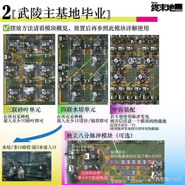以上便是本次分享的全部蓝图图示。可以清楚地看到,每一张图都聚焦于基地中不同功能模块的布局与连接。从核心生产线的摆放到后勤保障设施的衔接,这些蓝图展示了一种经过验证的高效协同方案。新地图带来的资源种类和地形变化,恰恰是检验和升级原有布局的好时机。不妨参考这些思路,结合你自身的科技树与资源储备,进行灵活调整与应用。希望这份分享能助力各位开拓者在新土地上,建造出更加强大、自给自足的终末地家园。