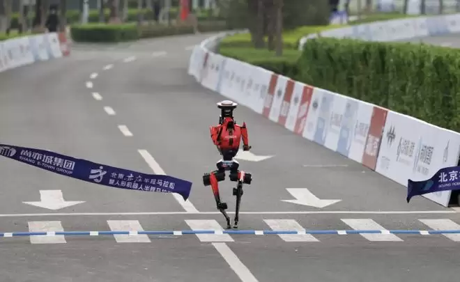2026年北京亦庄的赛道见证了一个历史性突破。齐天大圣队的“闪电”机器人以50分26秒的成绩冲线,将人类保持了多年的男子半程马拉松世界纪录(57分20秒)正式改写。这标志着机器人技术首次在长距离耐力跑这一综合体能极限项目上,实现了对人类的超越。