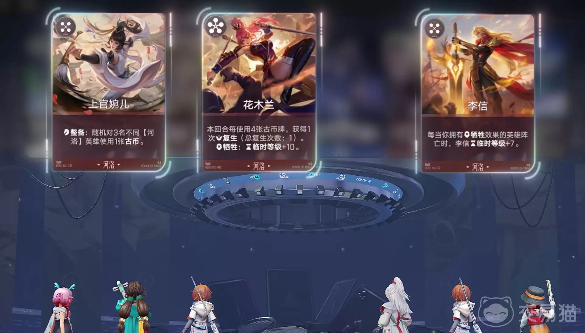 这套流派的核心,在于“牺牲转化”四个字。具体来说,就是利用河洛阵营中那些阵亡后能触发效果的英雄,他们退场时,能为李信提供临时的等级加成。紧接着,通过明世隐的卡牌技能,这些临时等级就能被固化为永久等级。这意味着什么?意味着你场上的每一次“牺牲”,都直接变成了李信成长的“经验包”。前期(第1到第3回合)的目标很明确:稳住血线,加速升级。优先拿李元芳、苏烈来构建基础战力,搭配奕星可以提升经验获取效率。如果遇到钟馗、铠这类优质单卡,也可以酌情拿取,增强前中期的生存能力。第一次拍卖阶段,建议优先锁定河洛系的牺牲型英雄,或者核心辅助明世隐,为后续体系搭建打好地基。