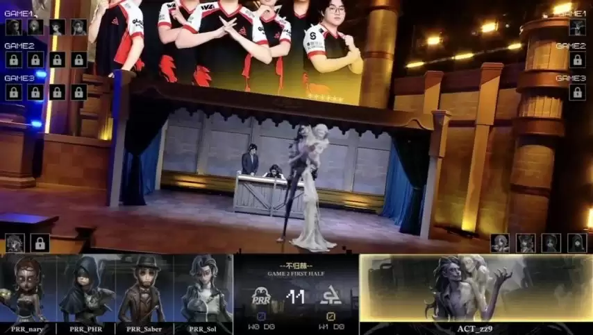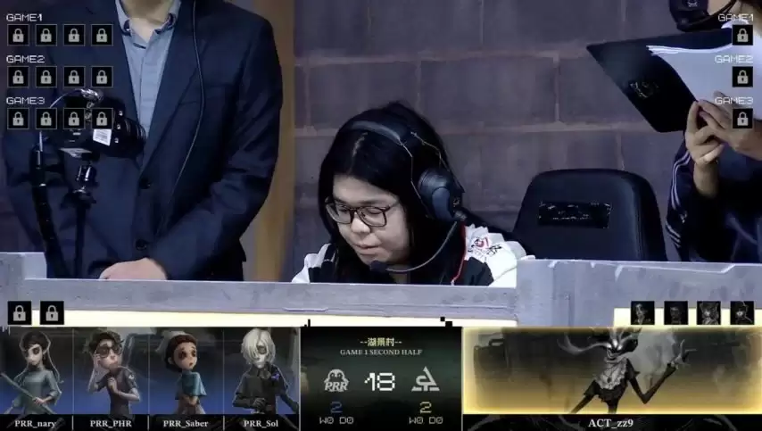 第二局,PRR的求生者阵容调整为咒术师、先知、魔术师和“骑士”,并禁用了“台球手”;ACT的监管者zz9则换用蜡像师出战,禁选名单上是弓箭手、幻灯师、机械师和佣兵。