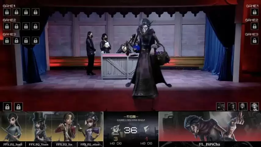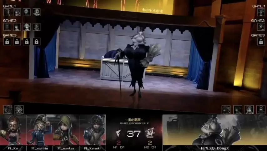 FL求生者阵容为古董商、气象学家、野人、杂技演员,同样BAN掉“跛脚羊”;FPX.ZQ监管者DongX选用梦之女巫,BAN掉先知、佣兵、飞行家及木偶师。