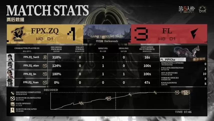 开门战中,“记录员”淘汰飞行家,但FL求生者团队成功实现三人逃生。