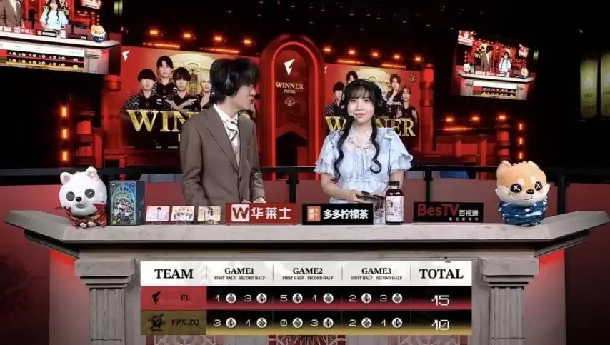 最终,FL战队凭借更优的团队协作与关键局运营能力,以总比分15:10战胜FPX.ZQ,拿下这场小组赛的重要胜利。