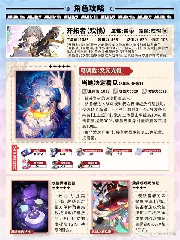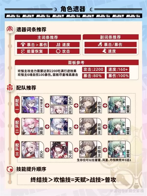 要最大化欢愉主的战场价值,需精准把握其机制核心并进行针对性配置。本指南将从光锥、遗器、词条、行迹及配队五个维度,提供系统性的构建方案。