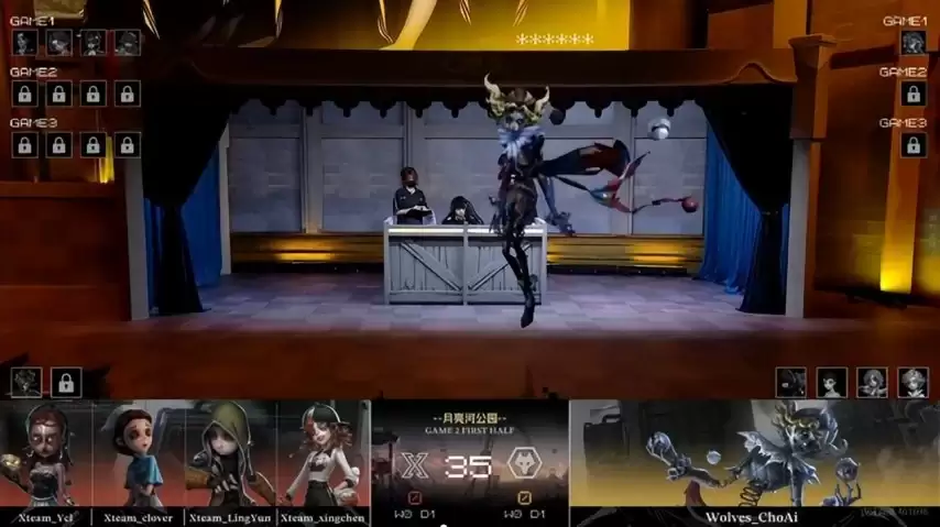 攻防互换,成都Wolves派出守墓人、医生、弓箭手和教授;Xteam监管者YuM则选择了歌剧演员。(本轮禁用了先知、木偶师、调香师和幸运儿)