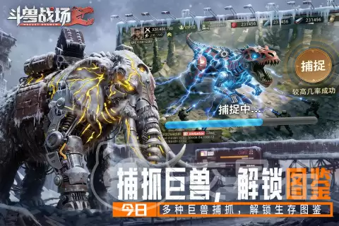 游戏的骨架,牢牢搭建在“捕获—培育—部署”这个核心循环之上。在广袤的辐射荒野中,游荡着搭载合金装甲的史前巨兽,从强化型霸王龙到高速空袭翼龙,种类繁多。有意思的是,抓捕过程摒弃了无脑的一键自动,它要求玩家预判巨兽的移动轨迹、巧妙规避范围攻击,并精准把握那转瞬即逝的眩晕窗口——整个过程充满了真实狩猎的节奏感和操作反馈,绝非点点屏幕就能完成。