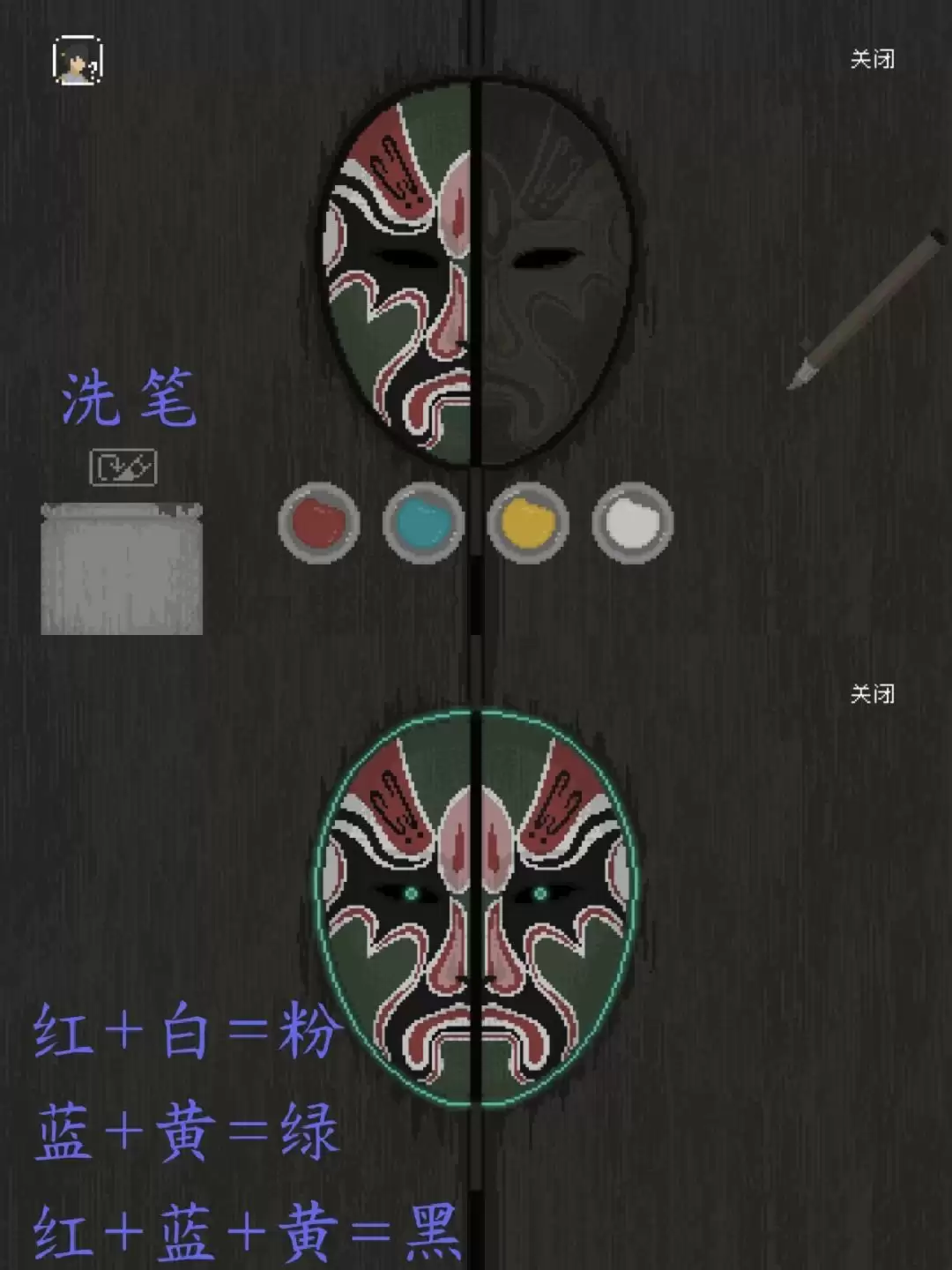 后台里还有个柜子值得调查,上面是个脸谱谜题。解开了,就能拿到一片“记忆碎片”。