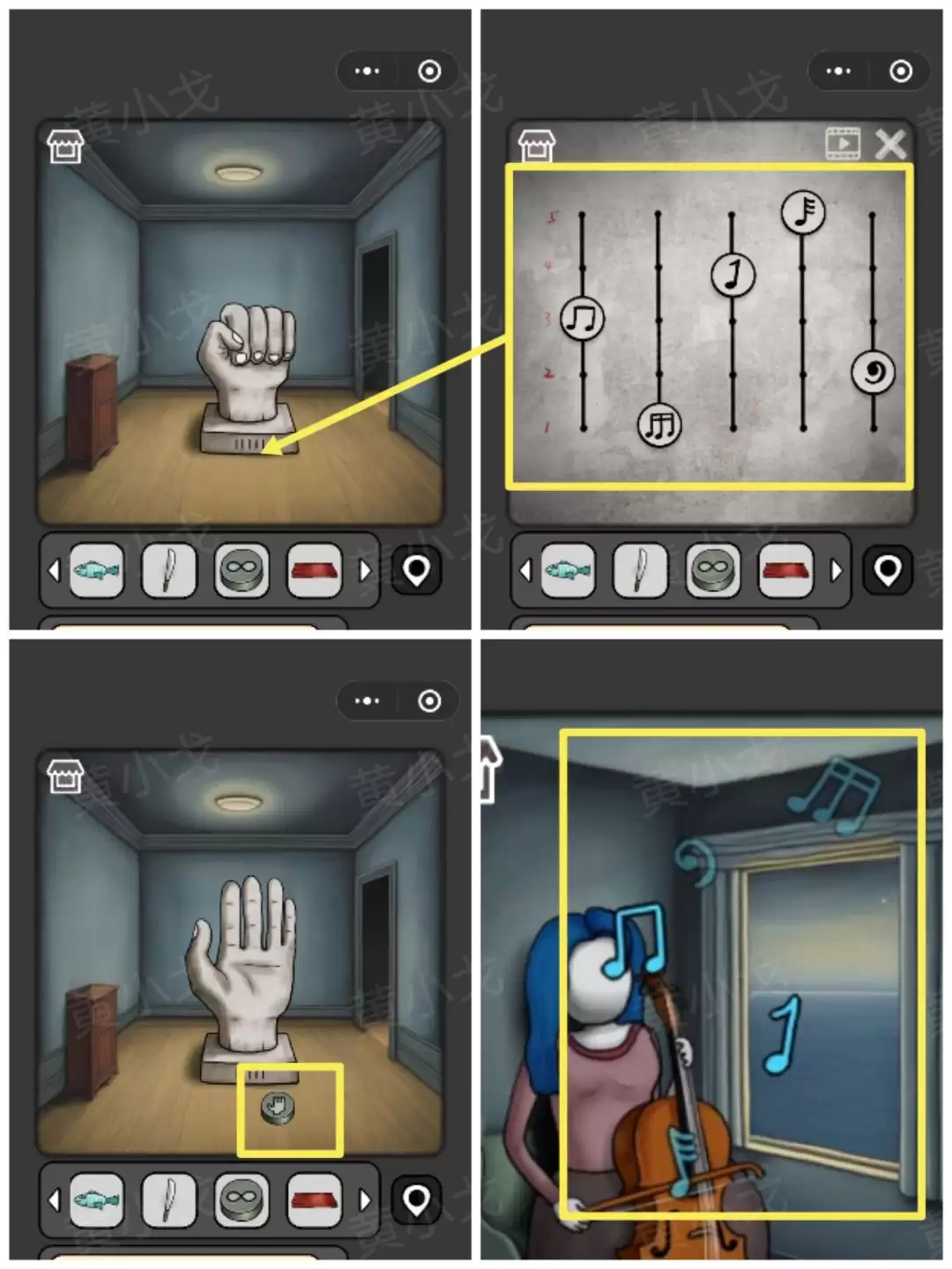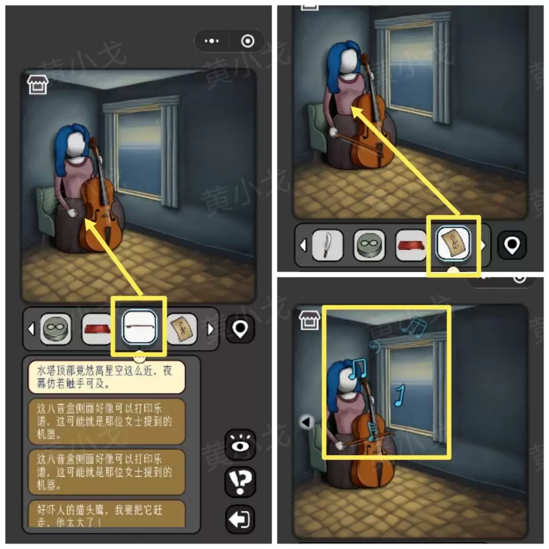 22. 将【拉弦】和【乐谱】交给女孩。她会给你一个重要的线索——音符出现的顺序。