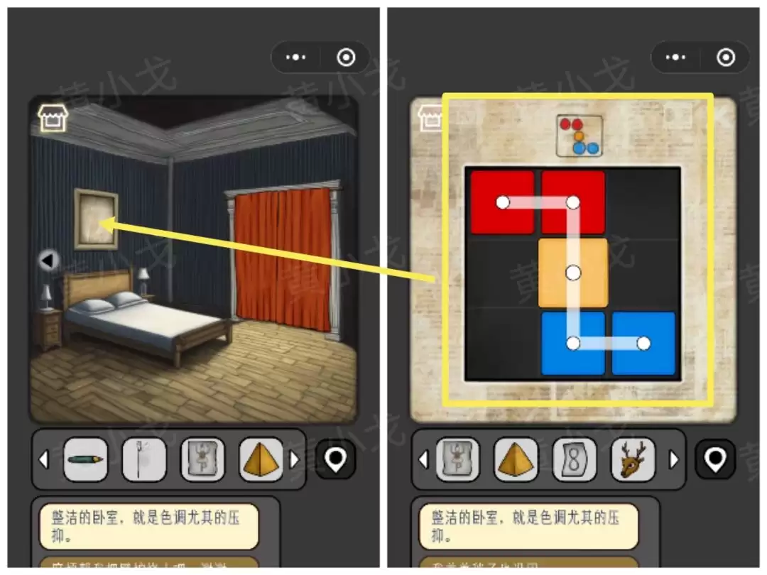 6. 点击床头的画,完成一个小游戏。成功后,窗帘会打开,进入下一场景。