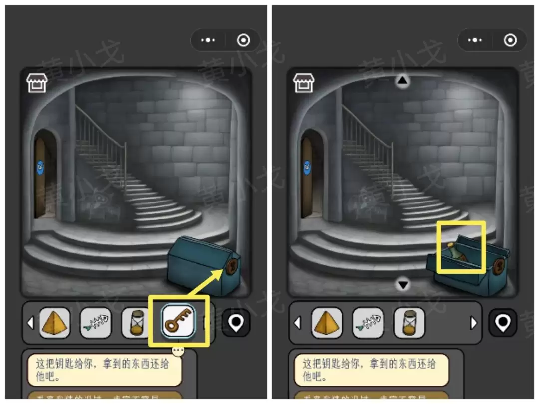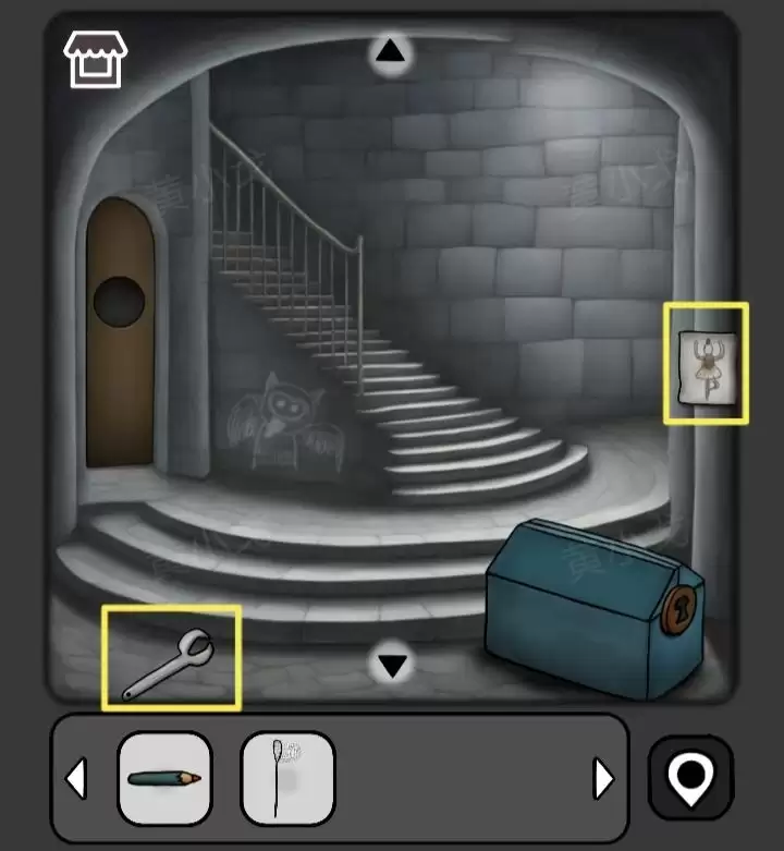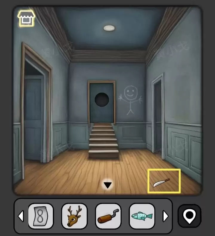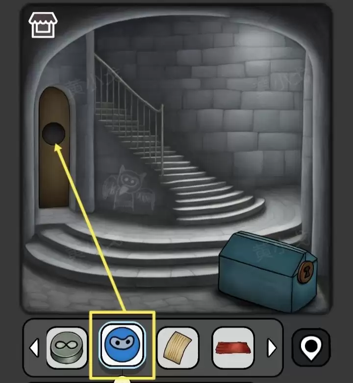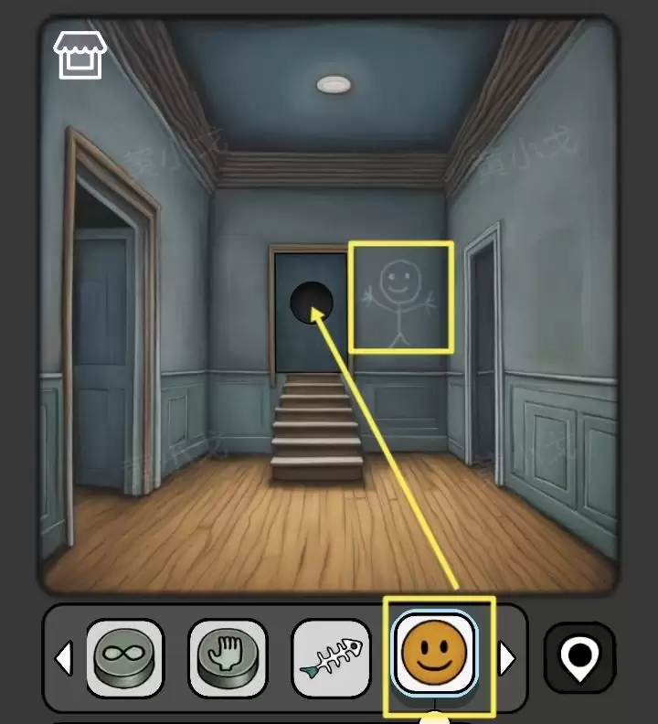 15. 观察门旁的笑脸图案,把刚刚得到的【笑脸】放入门上的对应凹槽。门,应声而开。