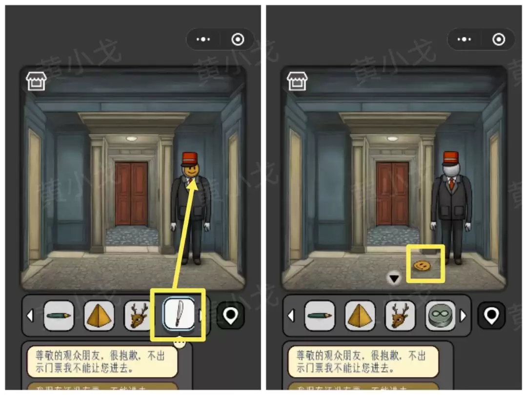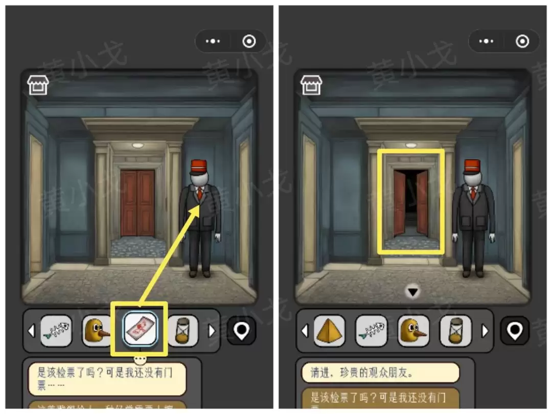 23. 出示【门票】给西装男检票,他身后的门就会为你打开。