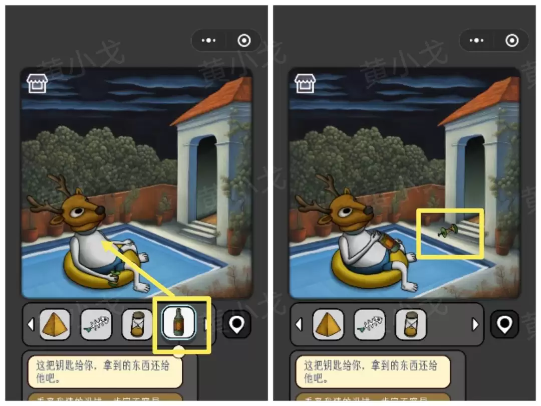 30. 把这瓶【饮料】递给面具男,他会给你一个【苹果仔】。