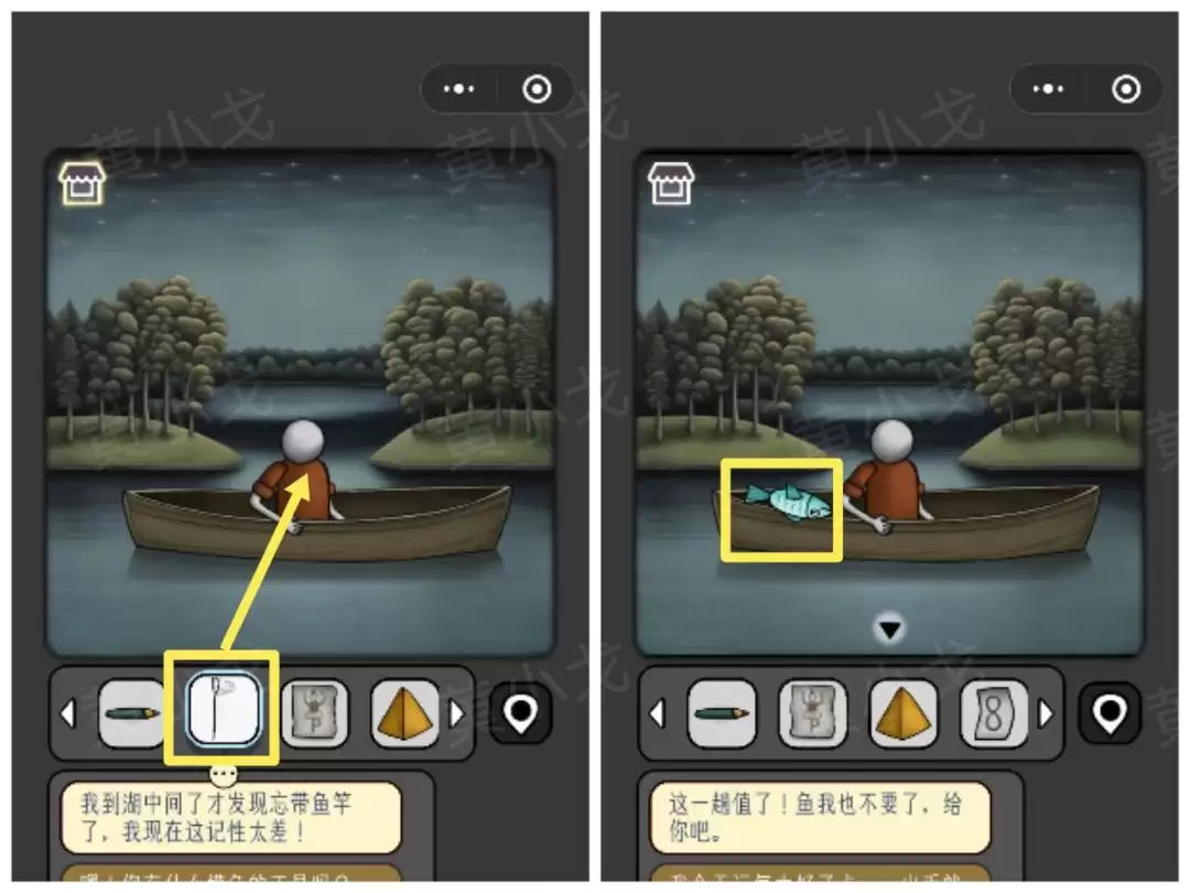 8. 把【捞网】递给窗外的男人,他会给你一条【鱼】。以物易物,很合理。