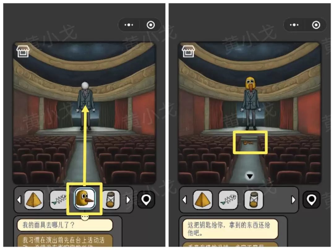 24. 把【面具】交给演厅里的无脸人,他会回报你一把【钥匙】。