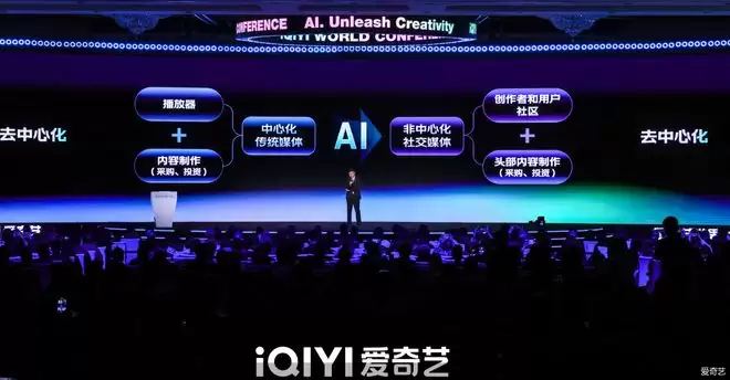 阐释战略逻辑时,龚宇指出,AI正在实质性降低影视制作成本、压缩生产周期、简化创作门槛。这必将驱动创作者数量与作品规模呈指数级增长。他的判断清晰:“过去的技术革新往往先改变平台,再影响内容;但AI是直接改写了内容生产本身。”正是基于这一认知,爱奇艺启动了去中心化转型,目标是构建“创作者与用户社区+头部精品内容”双轮驱动的新平台形态。