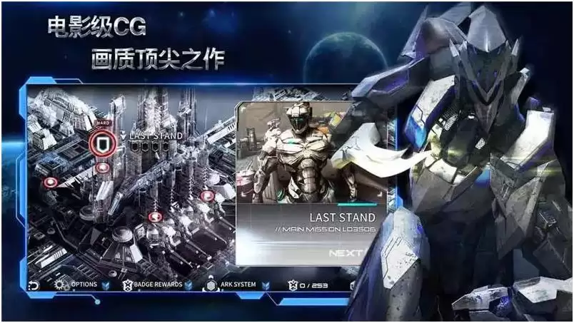 如果说前面几款侧重策略与养成,那么《聚爆》带来的就是最直接的视觉与操作冲击。它描绘了一幅波澜壮阔的星际战争图景,在堪比蓝光电影的科幻画质下,每一次战斗的爆炸与冲击都震撼眼球。游戏中登场的外形硬朗的盔甲机器人,以及各种充满想象力的脉冲、电子武器,都代表了当时手游技术的顶尖水准。独特的双武器机甲战斗系统,更让操作体验爽快无比。