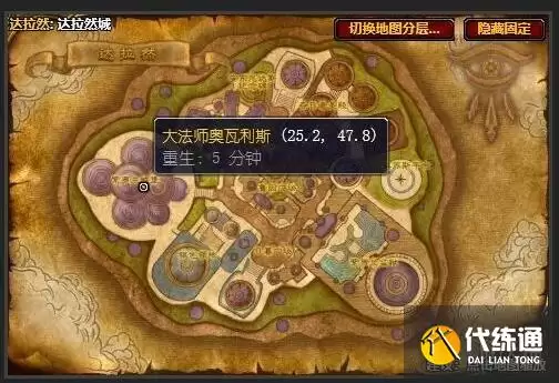 军需官大法师奥瓦利斯位于达拉然城的紫罗兰城堡内部。使用坐标插件可以精确定位到(25.2, 47.8)这个位置,助你快速抵达。