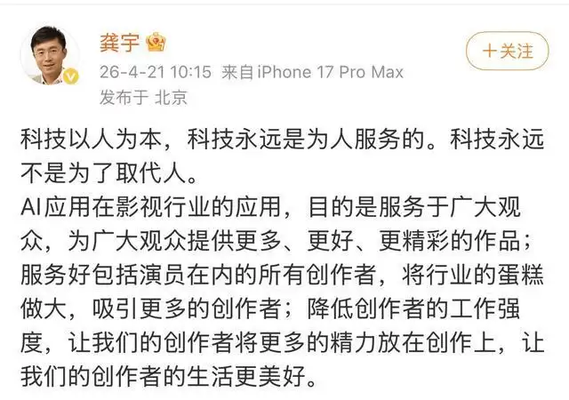 “最好的局面是,科技创新让我们的产业越来越有活力,规模越来越大,各种形态都能共存。”龚宇总结道。技术的进步,从来不该是一场零和博弈,其最终目的,是让整个影视产业的生态变得更加繁荣和多元。