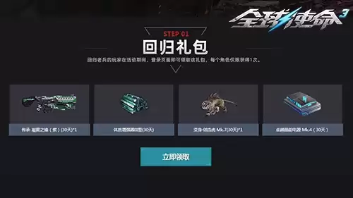 欢迎回家,老兵。为迎接诸位归来,官方为2026年4月1日前注册,且在2026年4月1日至4月13日期间未曾登录的玩家,备下了一份厚重的见面礼。从即日起,只要重返战场,即可免费领取这份回归礼包。里面包含了传承级近战武器“传承-凝聚之锋(紫)”、能显著提升战场生存率的“体质增强器III型”、经典变身角色“变身·剑齿虎 Mk.7”,以及“卓越晶能电源 Mk.4 30天体验卡”。这套组合拳的目的很明确:帮助老玩家迅速找回手感,无缝衔接当前版本,让你从回归的第一刻起,就能重拾巅峰状态。