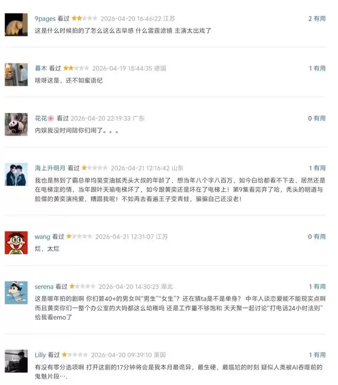 继《蜜语纪》之后,又一部中年偶像剧登场,观众反馈直接切中了要害。